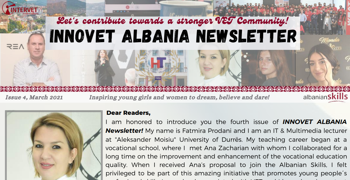 INNOVET Albania Newsletter – Issue 4 – Englishby Endrit Myrtain career services in municipalities, community, competitions, Erasmus, INNOVET Albania Newsletter, mobility, skills4all, skills4future, testimonials, VET Community, VET Learners, VET Staffon Posted on 31/03/202113/10/2025 INNOVET-Albania-Newsletter-Issue-4