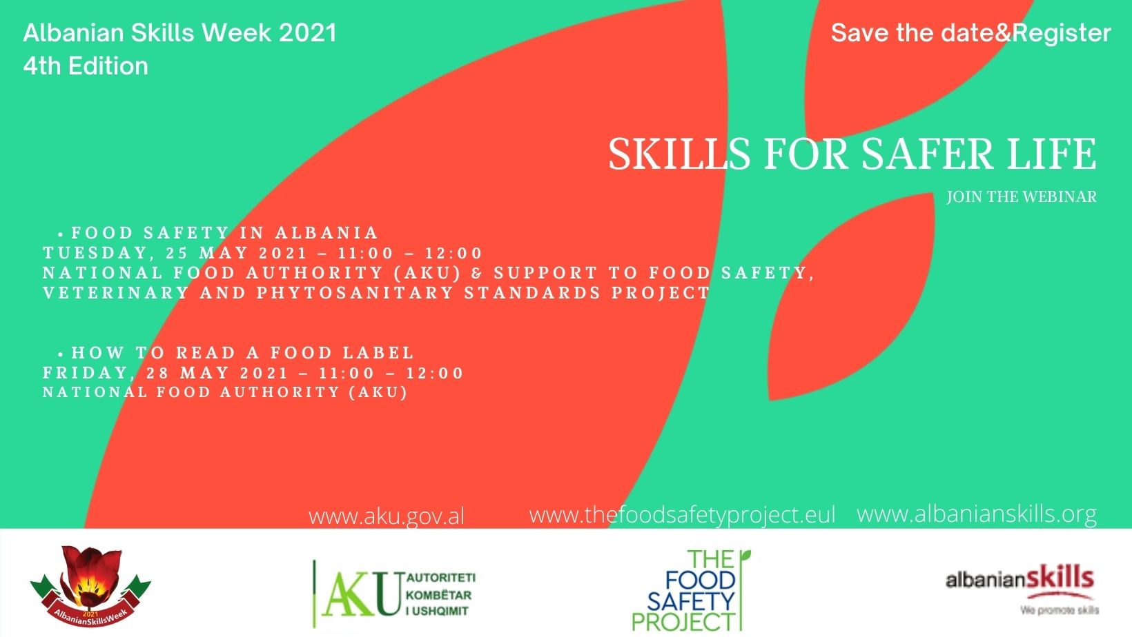 In the framework of the Albanian Skills Week on 24-29 May 2021, The Food Safety Project together with two AKU experts will provide the public audience and VET schools learners and teachers from the food processing, tourism and agrobusiness education sectors with necessary information regarding the food safety :